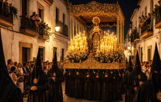 La música procesional, con marchas solemnes y saetas improvisadas desde los balcones, añade una carga emocional única que conmueve tanto a creyentes como a turistas.