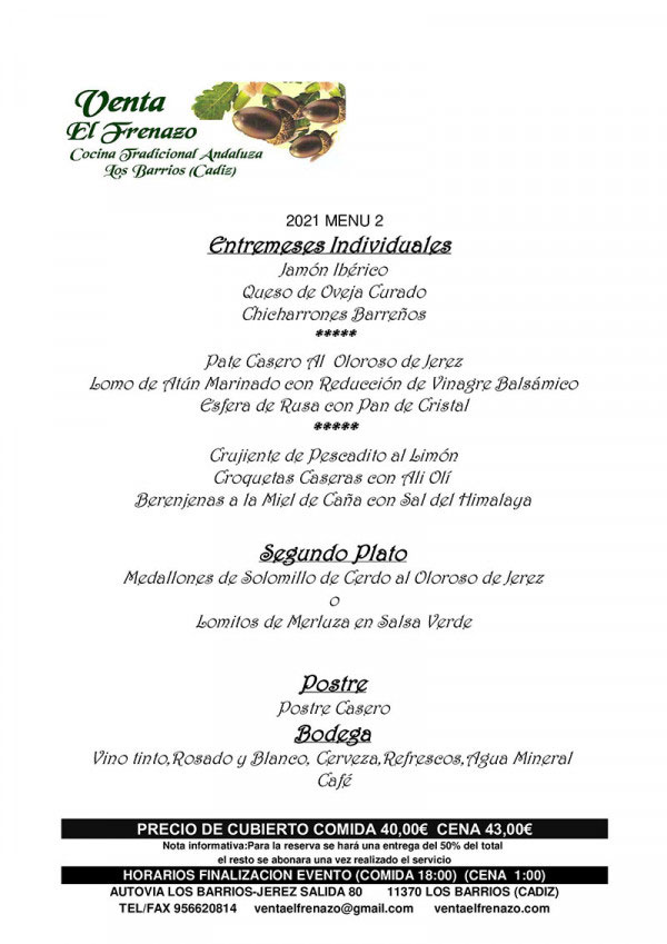 Las reservas se pueden hacer llamando al teléfono 956 620 814 o escribiendo al correo electrónico ventaelfrenazo@gmail.es.